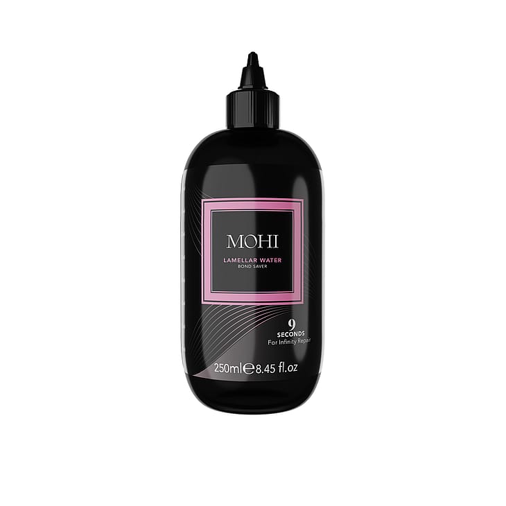MOHI Lamellar Water trænger dybt ind i håret og fungerer som en lamineringsvæske.