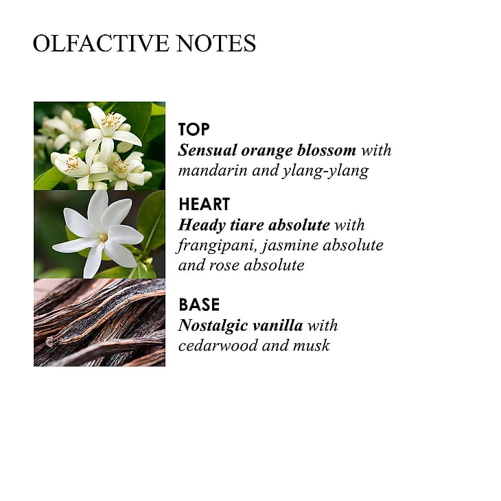 Et hjerte af den polynesiske frangipani, ren jasmin og ren rose.