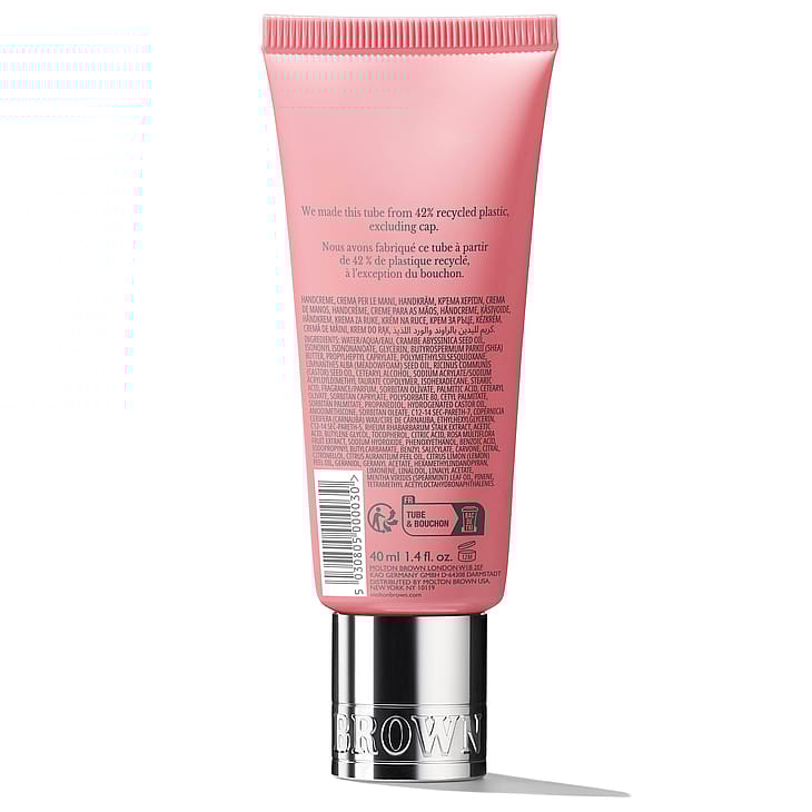 En luksuriøst fugtende håndcreme med sød rabarber, rosenblomst og energigivende citrusnoter.