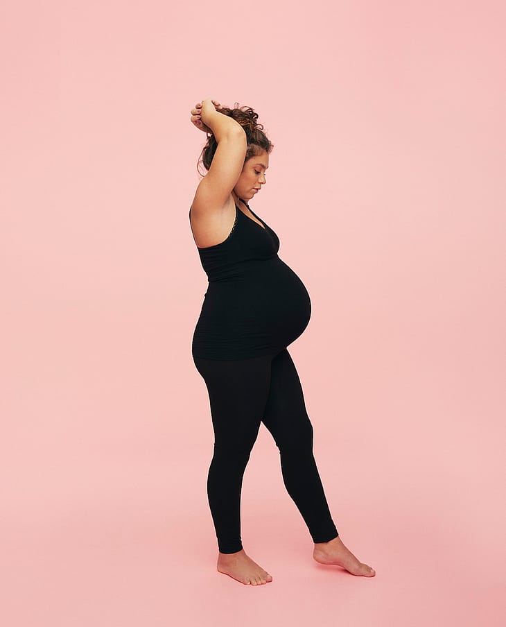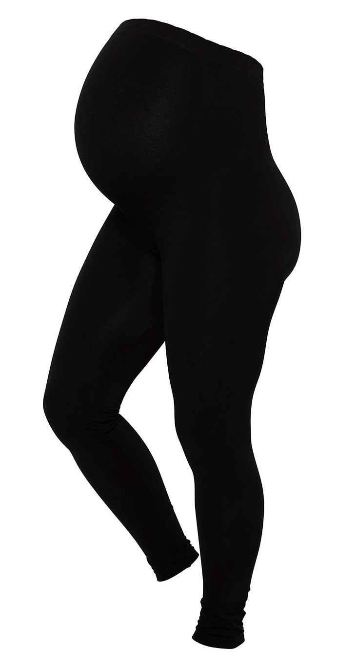 Sorte gravidleggings i økologisk bambusviskose med integrerede support-paneler i lænden og under maven.
