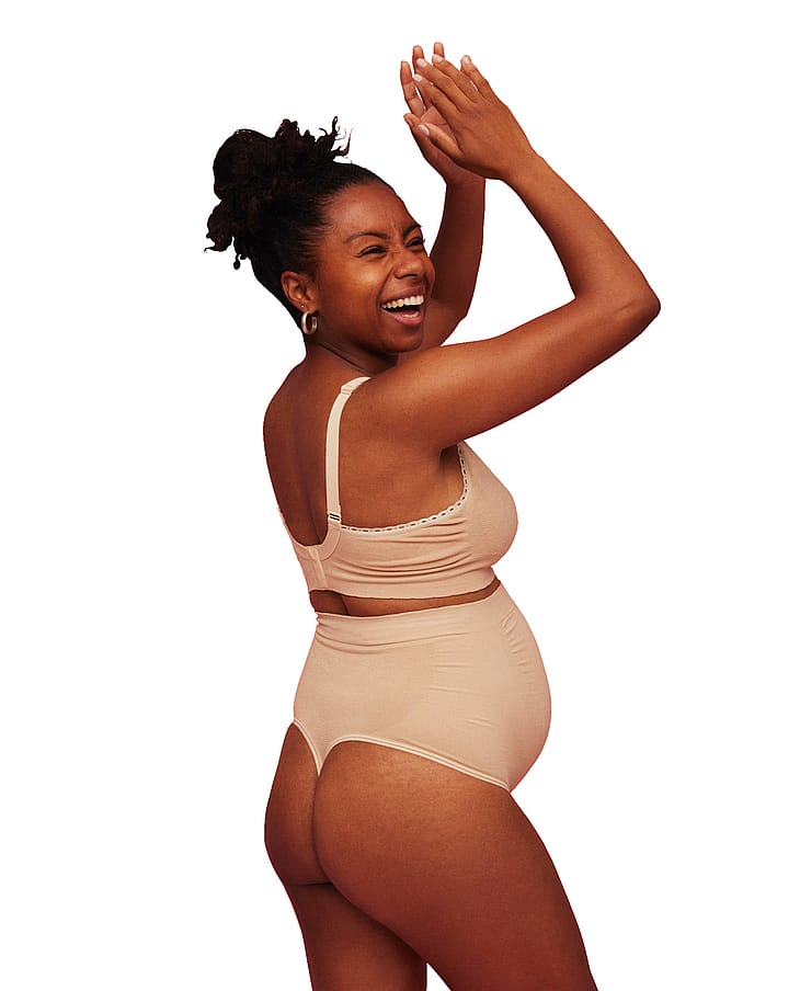 Momkinds belly support thong har en bred kile og bløde kanter, hvilket sikrer, at der ikke er noget, der strammer i lysken.