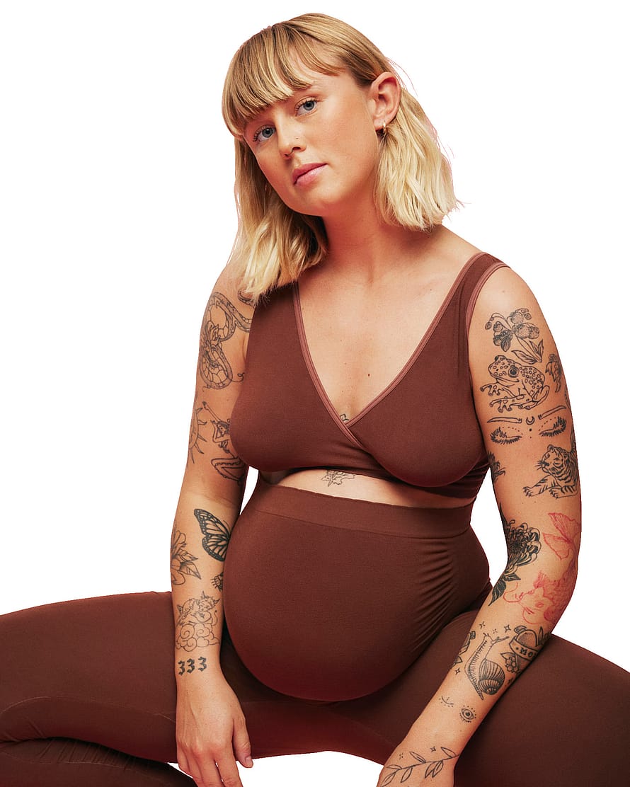 Momkinds crossover bra kan med fordel tages i brug allerede i graviditeten, når brysterne begynder at vokse og måske føles lidt ømme.