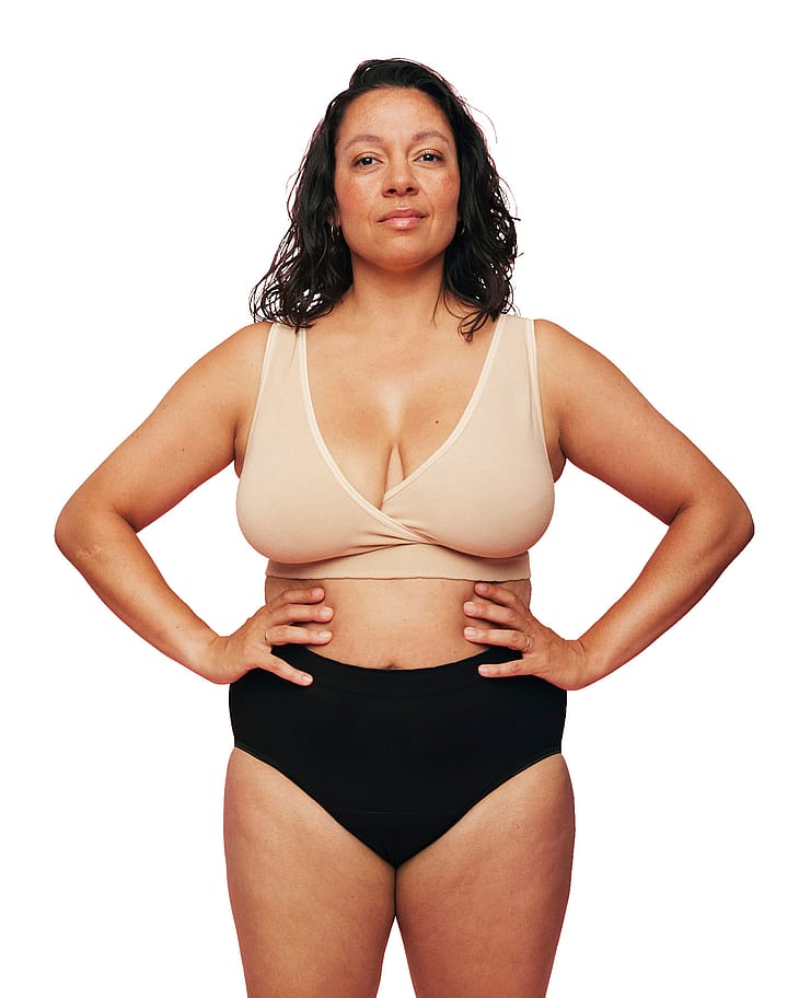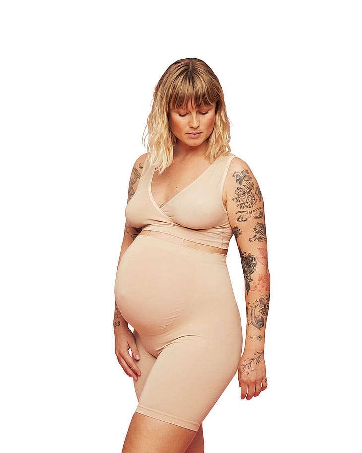 Momkinds crossover bra kan med fordel tages i brug allerede i graviditeten, når brysterne begynder at vokse og måske føles lidt ømme.