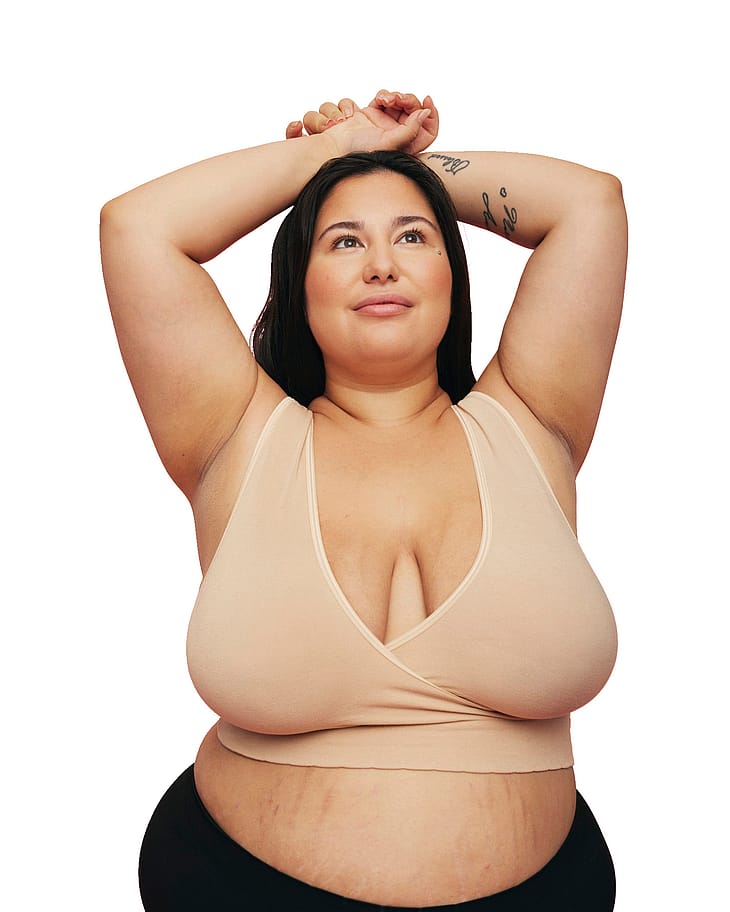 Momkinds crossover bra kan med fordel tages i brug allerede i graviditeten, når brysterne begynder at vokse og måske føles lidt ømme.