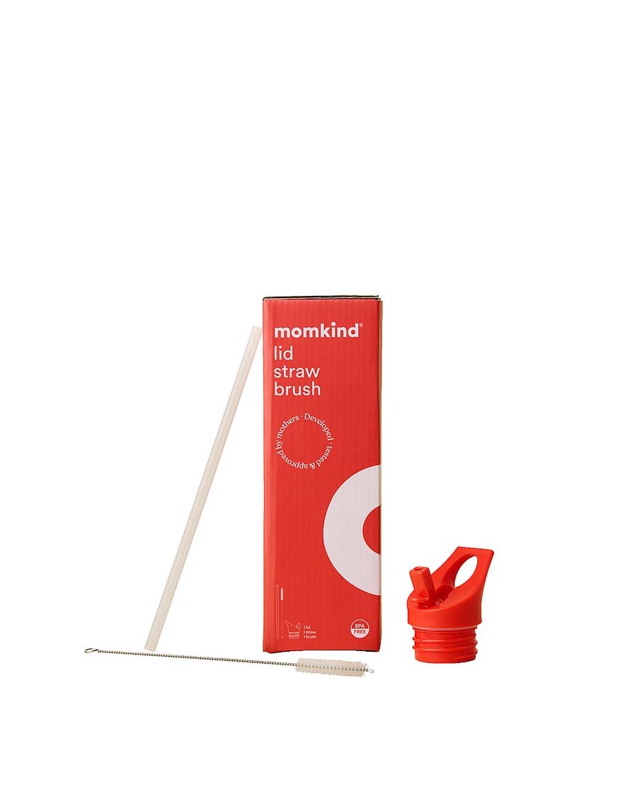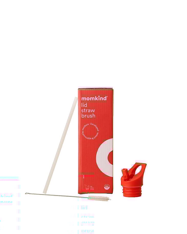 Momkind Låg med Sugerør SætSættet indeholder låg, sugerør og rensebørste, som passer til alle Momkind drikkedunke. Det er ideelt, hvis du har brug for et ekstra eller nyt sugerør til din drikkedunk. Låget er praktisk med sin nemme åbne- og lukkefunktion, og det kan let hænges på en krog på barnevognen.