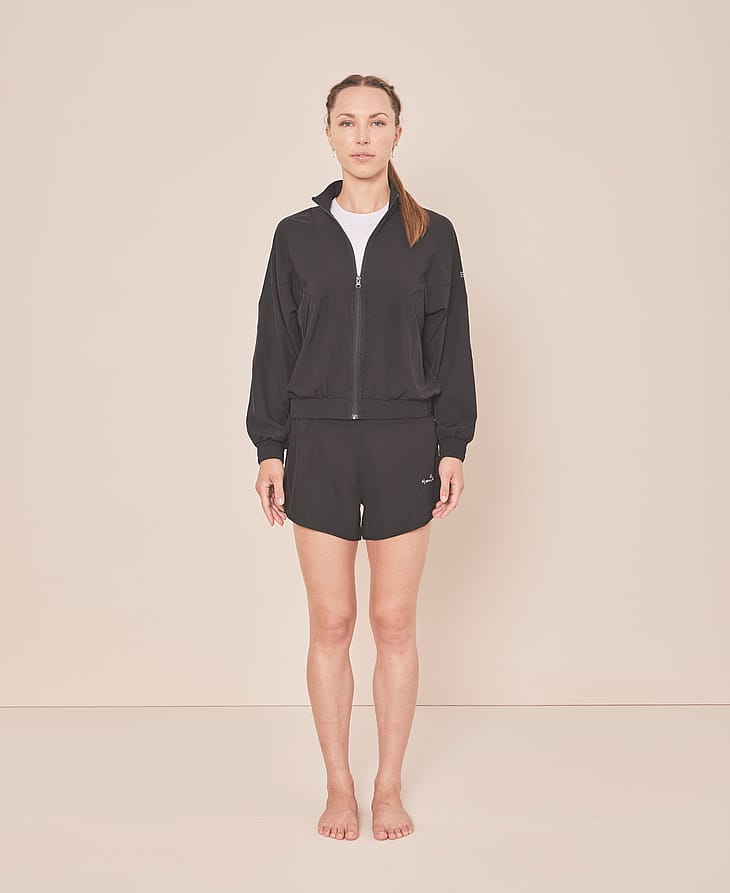 Moonchild Active Jacket er lavet med et premium strækbart, vævet ydermateriale, der har en blød, mat overflade, hvilket giver en raffineret, moderne æstetik samtidig med at det giver optimal bevægelsesfrihed.
