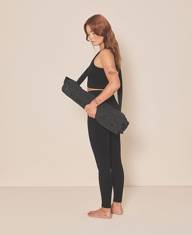 Moonchild Yoga Bag passer til de fleste yogamåtter og har en justerbar skulderrem.
