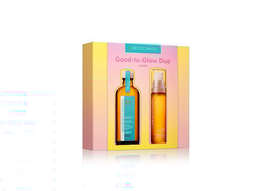 Sommerglød i to trinMoroccanoil Good to Glow Duo er en eksklusiv kombination af to plejeprodukter, én til håret og én til kroppen, der tilsammen giver glød fra top til tå hele sommeren.
