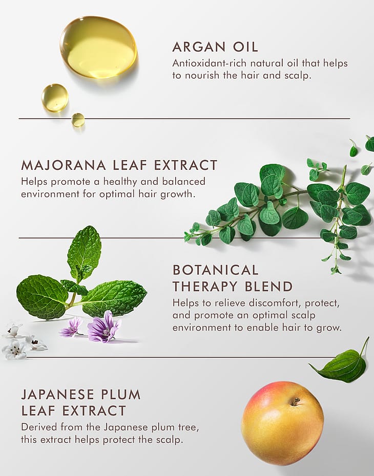 - Den terapeutiske blanding af planteekstrakter – fumaria-teekstrakt, swertia japonica-ekstrakt og bioaktive antioxidanter – hjælper med at rense, beskytte og lindre hovedbunden. Samtidig fremmer disse ekstrakter et sundt og balanceret hovedbundsmiljø, som skaber de bedste betingelser for håret og dets vækst.