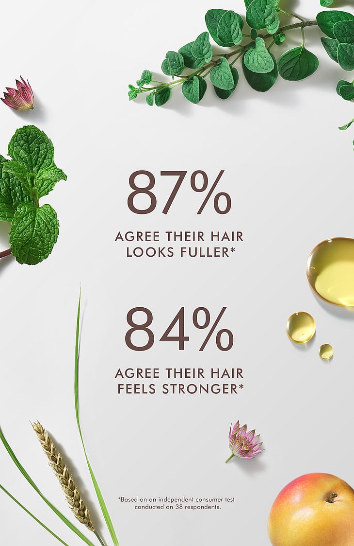 - Sød merianekstrakt har beroligende egenskaber og hjælper med at fremme en afbalanceret hovedbund for en optimal hårvækst.