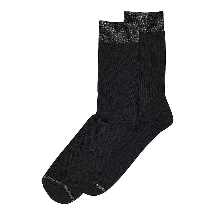 Luksuriøs Erin ankelsok i superwash uld med en flot glitterdetalje ved den brede ribkant.