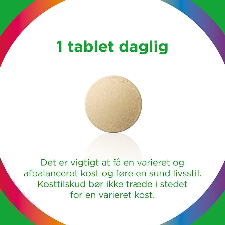 Anbefalet daglig dosis til voksne og unge over 11 år: 1 tablet dagligt.