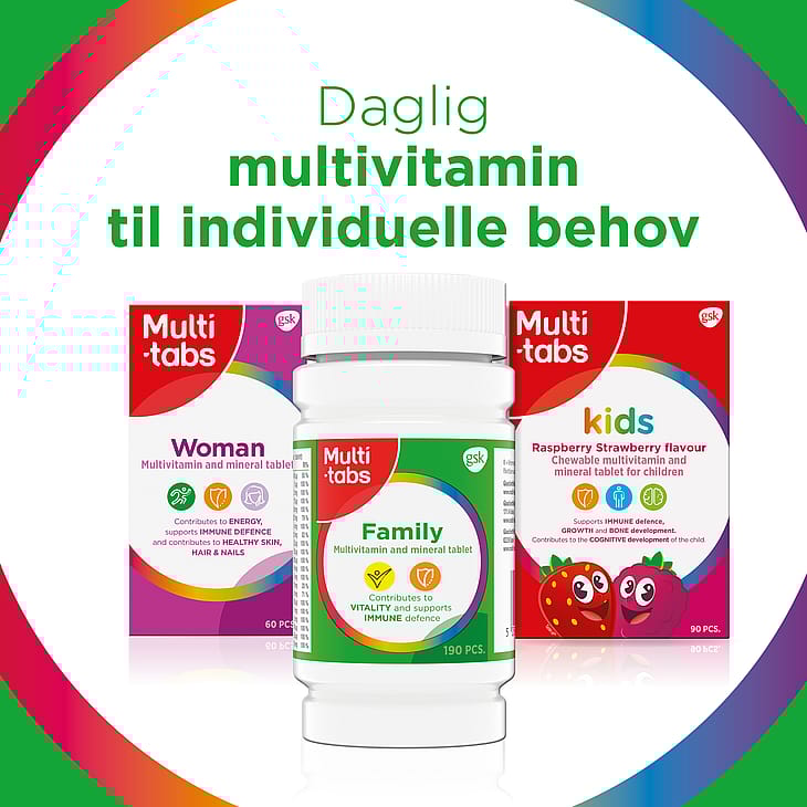 Multi-tabs Family er en multivitamin- og mineraltablet til voksne og unge 11+.