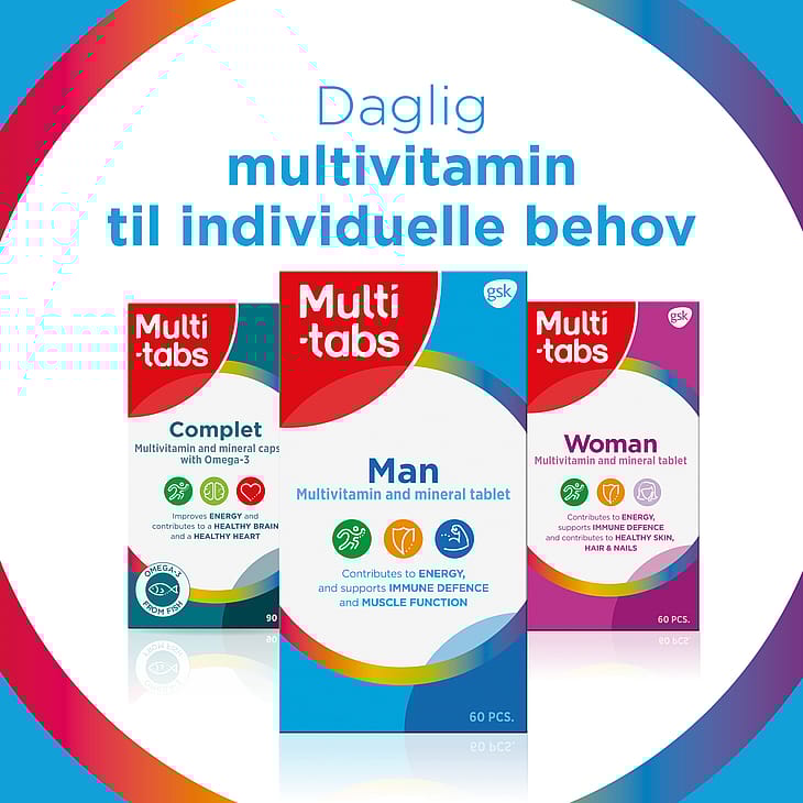 - reduktion af træthed: Multi-tabs Man indeholder vitamin B6, B12 og C som bidrager til et normalt energistofskifte og til at mindske træthed og udmattelse.