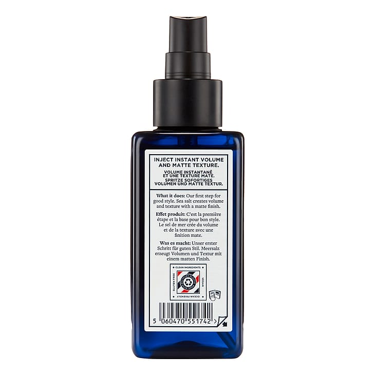 Den indeholder havsalt, som effektivt tykner håret og giver en fyldigere fornemmelse, mens naturlige olier og ekstrakter tilfører en frisk duft.