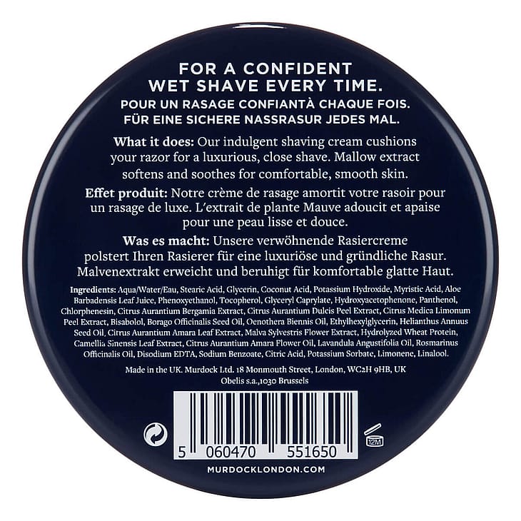 Murdock London Shaving Cream giver en tæt, glat og komfortabel barbering uden irritation. Den rige og cremede konsistens blødgør skægget og gør det lettere for barberbladet at glide jævnt over huden, hvilket reducerer risikoen for rifter og rødme.