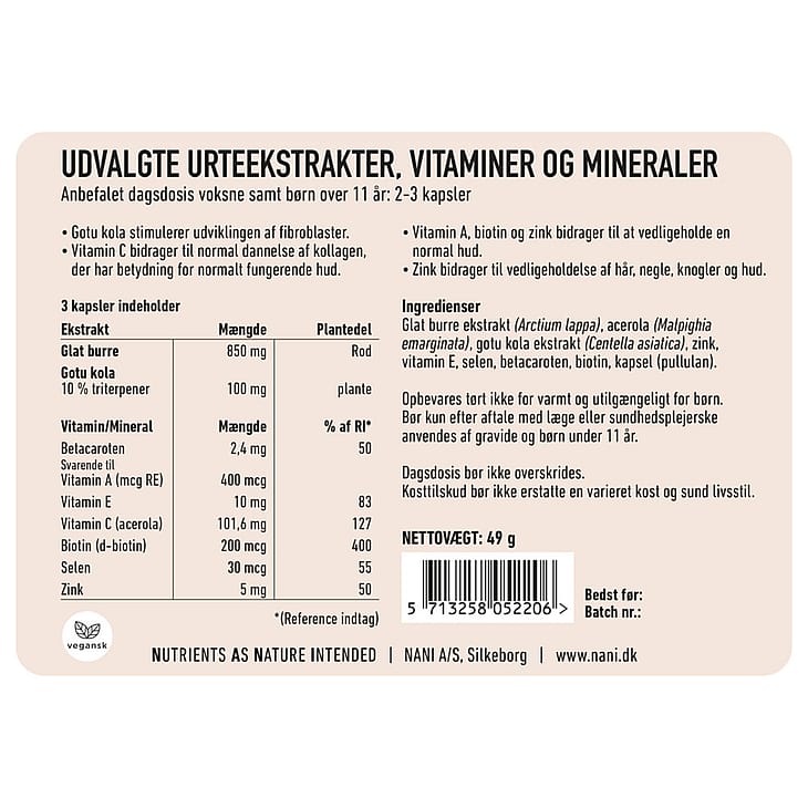 | Betacaroten svarende til Vitamin A | 2,4 mg 400 µg | 50% |