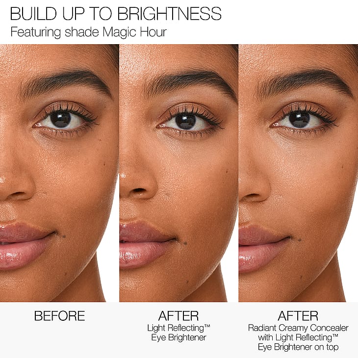 Light Reflecting™ Eye Brightener lysner og opfrisker øjenområdet for et øjeblikkeligt vågent udseende med en glød, der varer i op til 24 timer. Den avancerede hybridformel, der kombinerer makeup og hudpleje, skaber illusionen af en dramatisk opstramning ved at rette sig mod mørke rande og træthed. Den cremede tekstur, som ikke lægger sig i rynker, glider jævnt på huden og giver dig mulighed for at bygge op til den ønskede dækning. Den langvarige formel skaber en naturligt lysende effekt, samtidig med at hudvenlige ingredienser bidrager til at forbedre elasticiteten, styrke hudbarrieren og binde fugt.