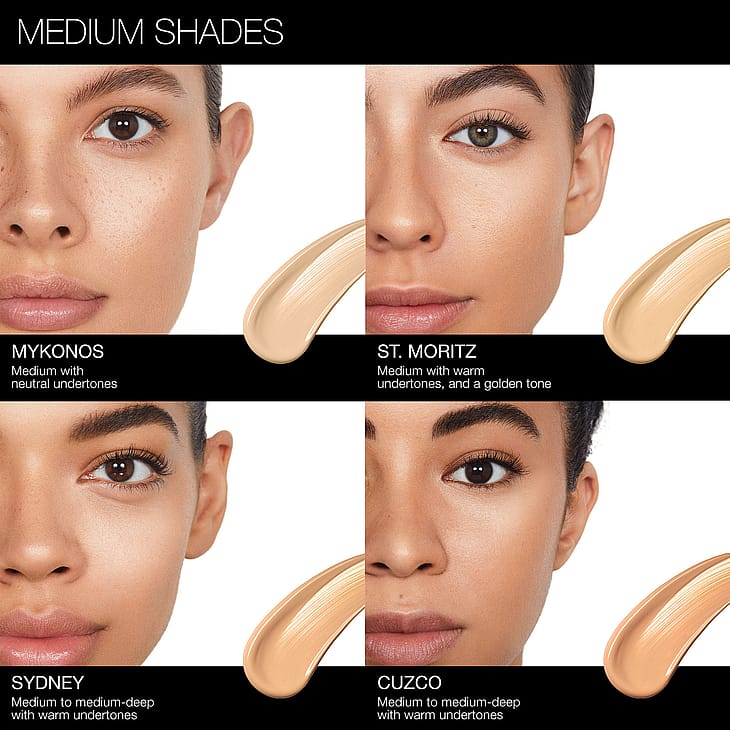 NARS Tinted Moisturizer findes i flere forskellige farvetoner, som matcher de fleste hudtoner og undertoner.