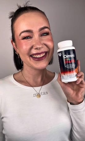 Sukker, fruktose (majs), rødbedepulver, vitamin A (betacaroten), vitamin D3 (cholecalciferol fra alge), vitamin E (d-alfa-tocopherolsuccinat), vitamin K2 (menaquinon), vitamin C (l-ascorbinsyre), vitamin B1 (thiaminmononitrat), vitamin B2 (riboflavin), niacin (nikotinamid), vitamin B6 (pyridoxinhydrochlorid), biotin (d-biotin), pantothensyre (calcium-d-pantothenat), calcium (lithothamnium calcareum), magnesium (citrat/lithothamnium calcareum), jern (ferrofumerat), zink (zinkcitrat), selen (L-selenmethionin), molybdæn (ammoniummolybdat), jod (kaliumjodid), cholin (VitaCholine®- cholinbitartrat), inositol.Konsistensmiddel: Stearinsyre, vegetabilske magnesiumsalte af fedtsyrer og siliciumdioxid.Overfladebehandlingsmiddel: æblesyre. Naturlig aroma: Kirsebær, jordbær, hindbær.
