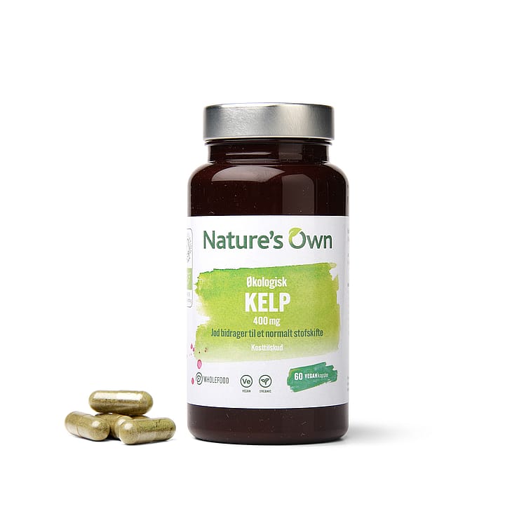 Kosttilskud. Økologisk Kelp Wholefood. Økologisk Kelp er velegnet til vegetarer og veganere, da det kommer i veganske kapsler og er en del af Wholefood-serien. Wholefood gør sig gældende på samme vis, som gruppen af Food State produkter, ved at indeholde ingredienser i naturlige former.