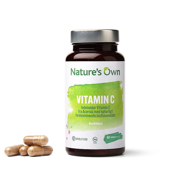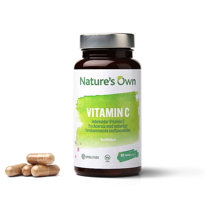 Nature's Own Vitamin C er et kosttilskud med vitamin C fra Acerola kirsebær, der dyrkes og tørres nænsomt, hvorefter de kommer på kapsel. På den måde får du ikke bare en kapsel med vitamin C, men også de naturligt forekommende bioflavonoider.