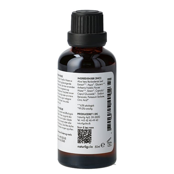 Herudover er Økologisk Micellar Water beriget med nøje udvalgte plejende ingredienser, der sikrer opretholdelsen af hudens fugtbalance.