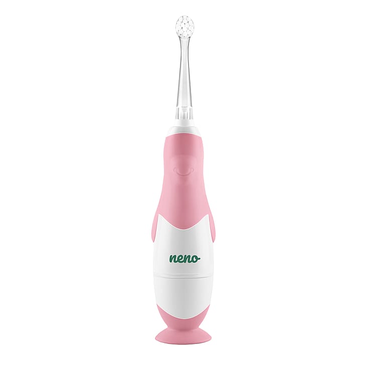 LED-lampen indbygget i Neno Denti-tandbørsten giver dig mulighed for at se inde i dit barns mund.