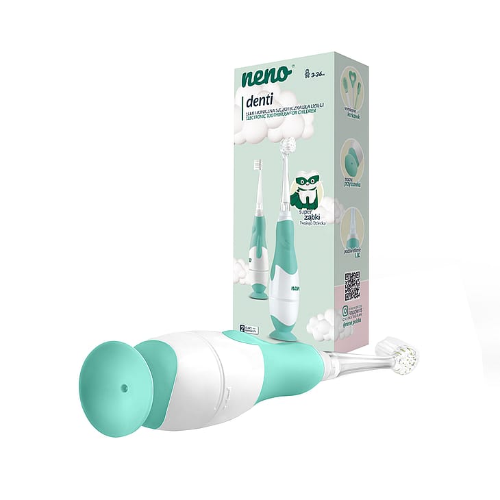 Neno Denti er mere end en tandbørste - det er et helt mundhygiejne sæt. Brug den til at lære dit barn at børste tænder regelmæssigt.