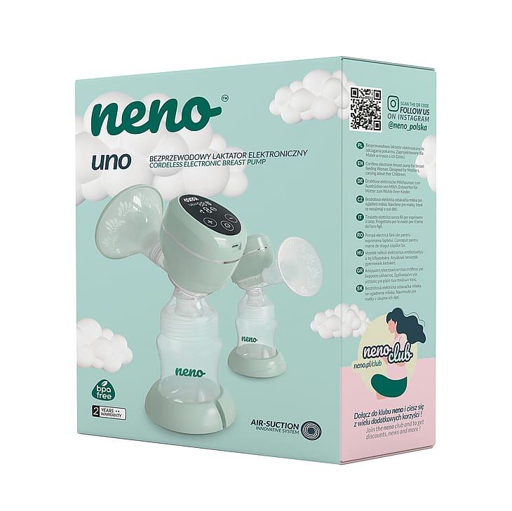 Neno Uno brystpumpe vil blive værdsat af enhver arbejdende mor. Enhedens pumpeenhed og batteri er småt, så du nemt kan tage enheden med dig og bruge den hele dagen.