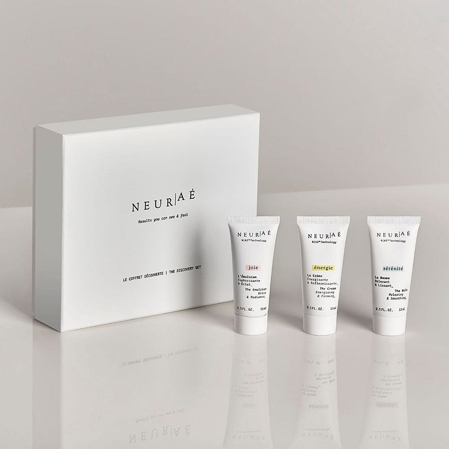 The Discovery Set - dine Neuraé essentials on the go! Tre størrelser à 15 ml, så du kan udforske den fulde effekt af vores sortiment. Perfekt til at teste, sammenligne og opleve fordelene for din hud. Det hjælper dig med at finde det perfekte produkt til dine behov.