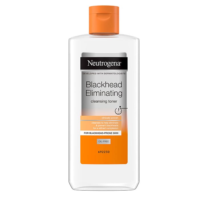Neutrogena® Blackhead Eliminating Cleansing Toner er en skintonic til hud med hudorme, der renser og hjælper med at reducere og forebygge dannelsen af nye hudorme. Klinisk testet til at afhjælpe og forebygge hudorme fra dag 1. Dybderensende formulering med AHA og salicylsyre, der renser tilstoppede porer og fjerner overskydende talg, snavs og forurening og samtidig forebygger dannelsen af nye hudorme. Anvendelse: Anvendes på ansigt og hals to gange dagligt med en vatrondel. Skal ikke skylles af. Eksperttip! For at opnå de bedste resultater, kan du med fordel bruge Blackhead Eliminating Facial Scrub i samme serie, sammen med en af vores andre serier alt efter din hudtype og behov. Kan anvendes som supplement til din daglige hudplejerutine. Produktspecifikationer: