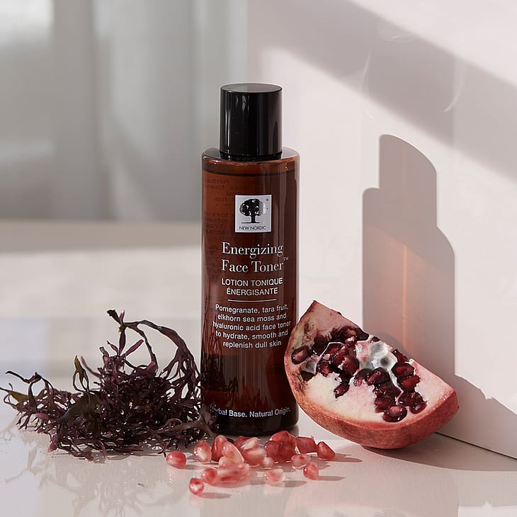 Mild og beroligende ansigtstoner med granatæble, tara frugt og rød tang samt hyaluronsyre der fugter huden og efterlader den fugtet, blød og strålende.