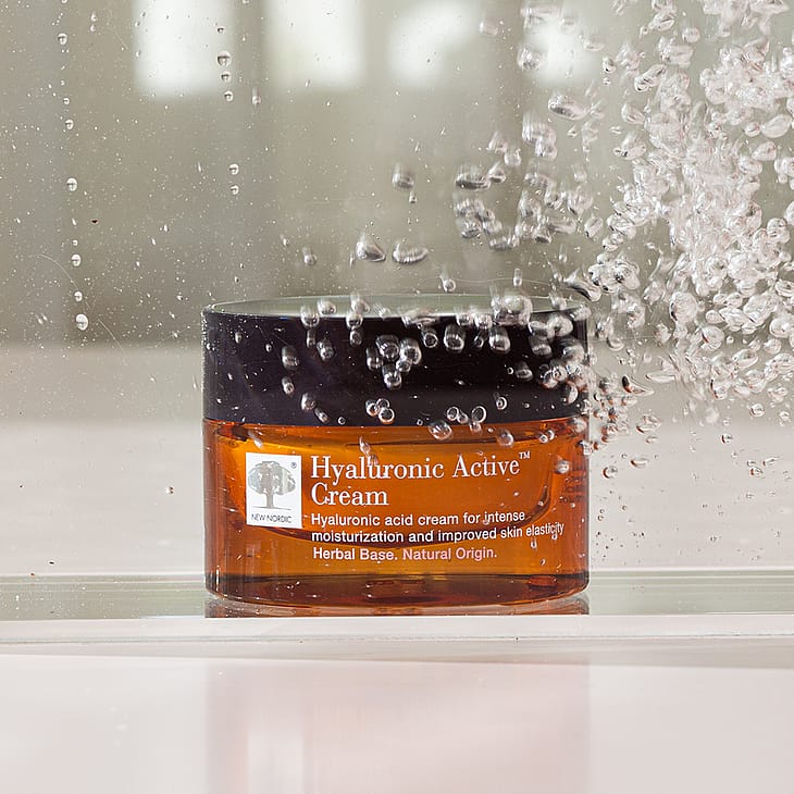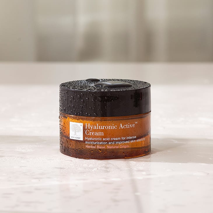 Hyaluronic Active™ Cream består bl.a. af havtorn og tre aktive hyaluronsyre-molekyler, der både fugter i dybden, beskytter og minimerer fine linjer i hudens overflade.