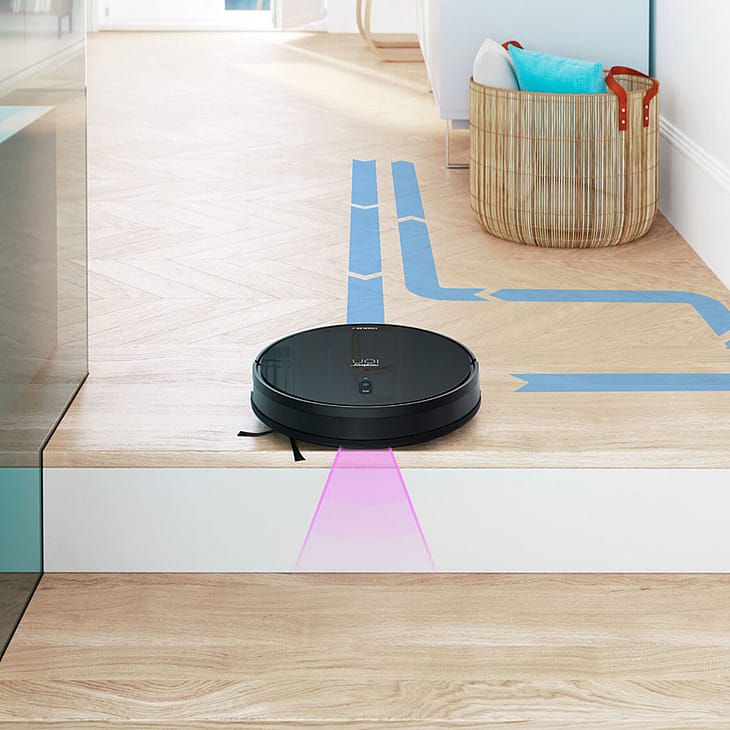 Støvsugeren er i stand til at genkende rod med Optical Flow-teknologi, levere 100 % fuld dækning af dine gulve med NaviGATE-systemet og undgå forhindringer med Red SENSE-teknologi.