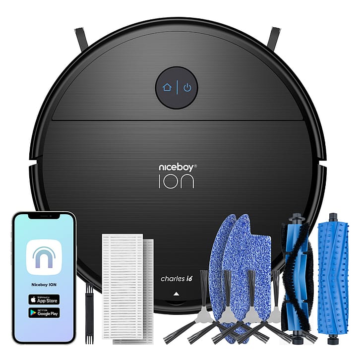 Med Niceboy ION Charles i6 får du en moderne robotstøvsuger, der gør det nemt at opnå et rent og sundt hjem. Dens kombination af avanceret teknologi, brugervenligt design og effektiv rengøring gør den til en værdifuld hjælp i dagligdagen.