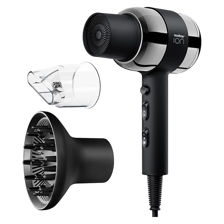 Niceboy ION AirSonic Pro er den perfekte hårtørrer til hurtig og skånsom styling. Med en kraftfuld motor på 2200 watt og ioniseringsteknologi, beskytter den håret mod udtørring og efterlader det skinnende og sundt.