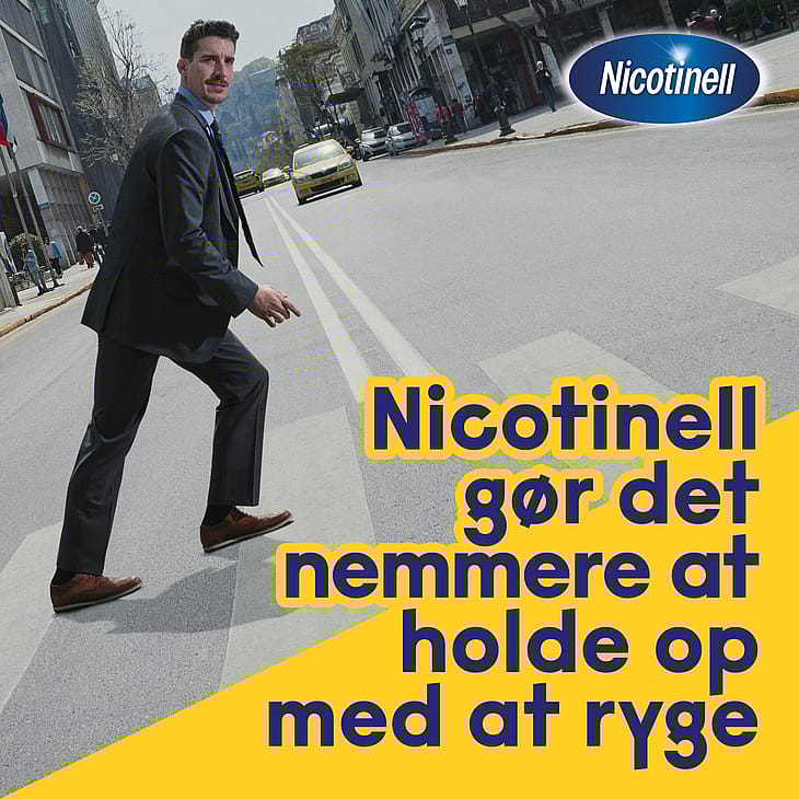 Bivirkninger: tg: Meget almindelige: Kvalme. Almindelige: betændelse i mundslimhinder, ubehag i munden, ondt i halsen, opkast, mavesmerter, diarré, fordøjelsesbesvær, halsbrand, luft i maven, hikke, forstoppelse, svimmelhed, hovedpine, søvnløshed, hoste, mundtørhed, smerte i mund, hals og kæbemuskler. Øvrige bivirkninger: Se indlægsseddel. Visse symptomer kan skyldes abstinenssymptomer og for lav tilførsel af nikotin.