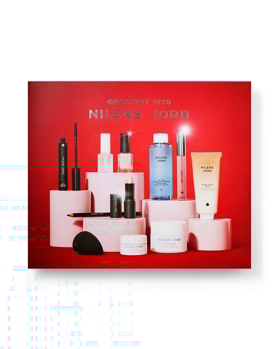Nilens Jord Greatest Hits Gaveæske – Den perfekte julegave til dig selv eller en du holder af! Denne eksklusive gaveæske indeholder et udvalg af Nilens Jords mest populære hudpleje- og makeupprodukter, der vil forkæle og fremhæve dine bedste træk i den kommende juletid.
