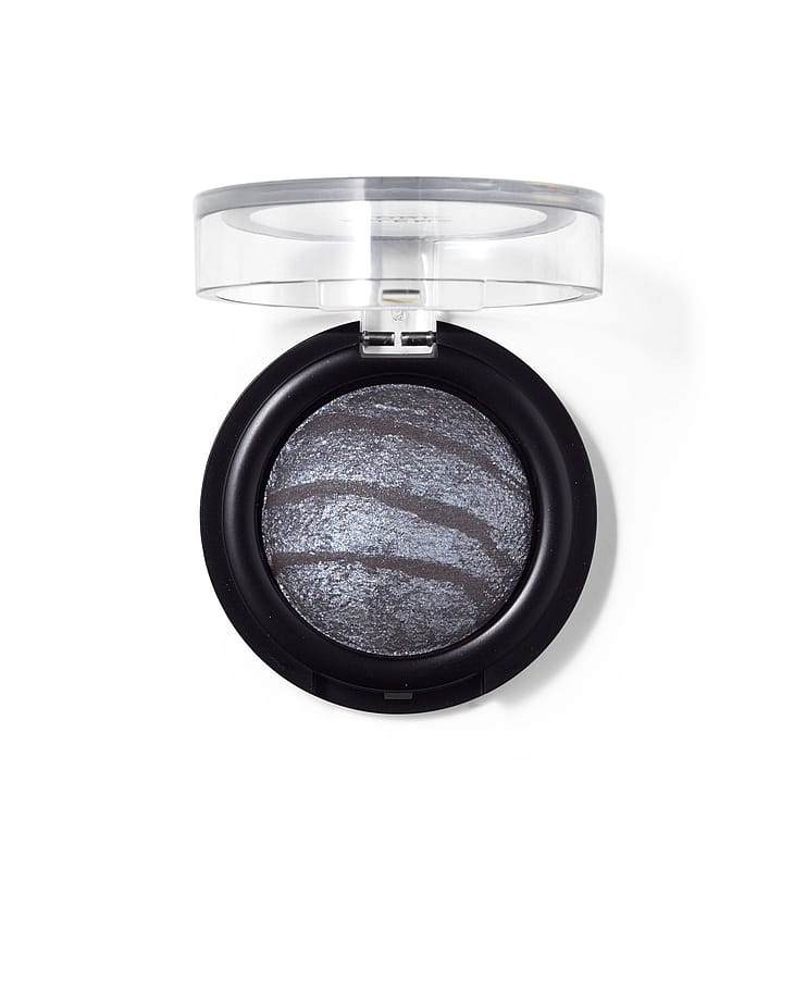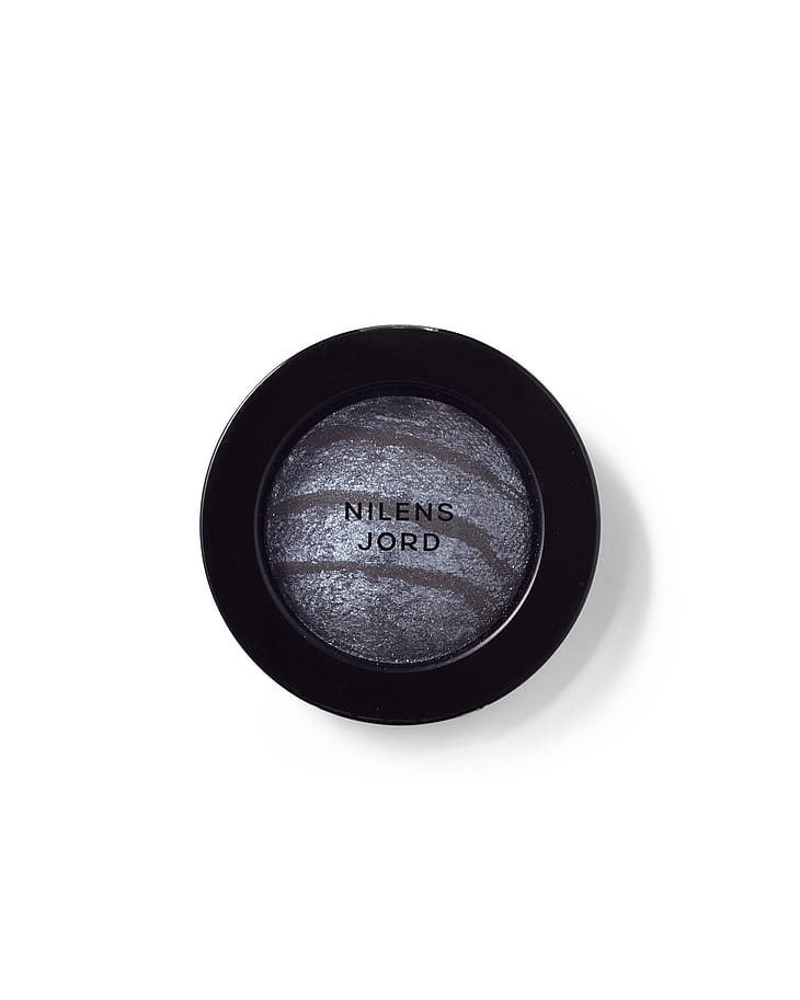 Nilens Jord Baked Mineral Eyeshadow Midnight er en luksuriøs øjenskygge med et smukt miks af dybe gråblå nuancer med en metallisk effekt.