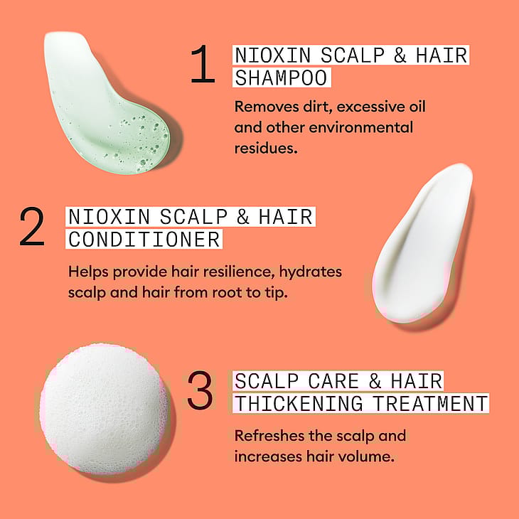 Shampoo: Aqua/Water/Eau, Sodium Laureth Sulfate, Sodium Lauryl Sulfate, Sodium Chloride, PPG-2 Hydroxyethyl Coco/Isostearamide, Sodium Benzoate, Citric Acid, Salicylic Acid, Mentha Arvensis Leaf Oil, Mentha Piperita (Peppermint) Oil, Tetrasodium EDTA, Trisodium Ethylenediamine Disuccinate, Methylparaben, Polyquaternium-10, Propylene Glycol, Sodium Hydroxide, Limonene, Camellia Sinensis Leaf Extract, Cystine Bis-PG-Propyl Silanetriol, Niacinamide, Panthenol, Biotin, Lecithin, Tocopheryl Acetate, Foeniculum Vulgare (Fennel) Fruit Extract, Yellow 5 (CI 19140), Acer Saccharum (Sugar Maple) Extract, Citrus Limon (Lemon) Peel Extract, Saccharum Officinarum/Sugar Cane Extract/Extrait de canne a sucre, Vaccinium Myrtillus Leaf Extract, Faex Extract/Yeast Extract/Extrait de levure, Propylparaben, Blue 1 (CI 42090), Phenoxyethanol, Citrus Aurantium Dulcis (Orange) Fruit Extract, Red 33 (CI 17200), Maltodextrin, Potassium Sorbate, Sodium Citrate, Ethylparaben, Butylparaben, Sodium Xylenesulfonate. Conditioner: Aqua/Water/Eau, Cetyl Alcohol, Stearamidopropyl Dimethylamine, Stearyl Alcohol, Distearyldimonium Chloride, Phenoxyethanol, Benzyl Alcohol, Cetearyl Alcohol, Hydroxypropyl Guar, Glyceryl Stearate, Oleyl Alcohol, Mentha Piperita (Peppermint) Oil, Mentha Arvensis Leaf Oil, Propylparaben, Polysorbate 60, Propylene Glycol, Methylparaben, EDTA, Hydroxyethylcellulose, Citric Acid, Quaternium-80, Limonene, Camellia Sinensis Leaf Extract, Cystine Bis-PG-Propyl Silanetriol, Tocopheryl Acetate, Lecithin, Biotin, Panthenol, Niacinamide, Foeniculum Vulgare (Fennel) Fruit Extract, Disodium Phosphate, Acer Saccharum (Sugar Maple) Extract, Vaccinium Myrtillus Leaf Extract, Citrus Limon (Lemon) Peel Extract, Saccharum Officinarum/Sugar Cane Extract/Extrait de canne a sucre, Faex Extract/Yeast Extract/Extrait de levure, Sodium Phosphate, Citrus Aurantium Dulcis (Orange) Fruit Extract, Maltodextrin, Blue 1 (CI 42090), Potassium Sorbate, Sodium Benzoate, Ethylparaben, Butylparaben. Treatment: Aqua/Water/Eau, Niacinamide, Phenylbenzimidazole Sulfonic Acid, Caffeine, Polysorbate 20, Benzophenone-4, Phenoxyethanol, Sodium Benzoate, PEG-12 Dimethicone, Benzyl Alcohol, Sodium Hydroxide, Cocamidopropyl Betaine, Acetamide MEA, Tetrasodium EDTA, Propylene Glycol, Methyl Nicotinate, Mentha Arvensis Leaf Oil, Parfum/Fragrance, Polysorbate 80, Polysorbate 60, PEG-23M, Mentha Piperita (Peppermint) Oil, Limonene, Camellia Sinensis Leaf Extract, Cystine Bis-PG-Propyl Silanetriol, Lecithin, Tocopheryl Acetate, Biotin, Foeniculum Vulgare (Fennel) Fruit Extract, Silica, Citrus Limon (Lemon) Peel Extract, Saccharum Officinarum/Sugar Cane Extract/Extrait de canne à sucre, Acer Saccharum (Sugar Maple) Extract, Vaccinium Myrtillus Leaf Extract, Citric Acid, Faex Extract/Yeast Extract/Extrait de levure, Propylparaben, Citrus Aurantium Dulcis (Orange) Fruit Extract, Maltodextrin, Methylparaben, Potassium Sorbate, Ethylparaben, Butylparaben, BHT.