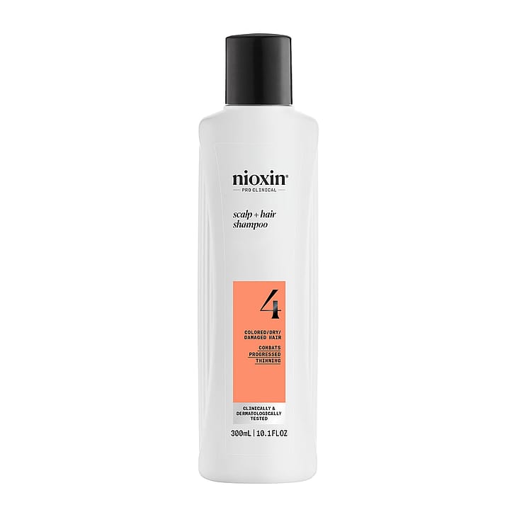 Denne dermatologisk testede shampoo indeholder niacinamid og biotin, der fugter hovedbunden og håret fra rod til spids, samtidig med at det fortykker og styrker hårstrukturen. Afslut med Nioxin System 4 Conditioner og Nioxin System 4 Treatment for at få det bedste resultat.