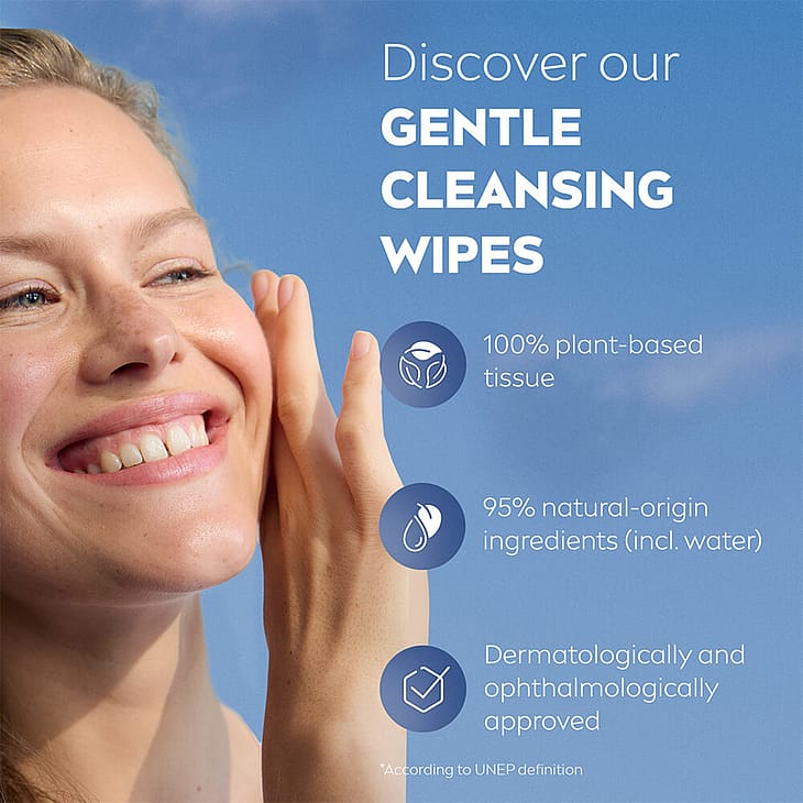 NIVEA Micellar Cleansing Wipes er renseservietter udviklet med micellar teknologi. Servietterne indeholder NIVEA Micellar vand beriget med Vitamin E. Udviklet specielt til at rense i dybden og fjerne vandfast makeup. Har en opfriskende effekt og efterlader huden fugtet. Renseservietterne, der indeholder Micellar vand og Vitamin E, bevarer hudens fugtbalance. Kan bruges på ansigt, øjne og læber og fjerner endda vandfast makeup. 100% plantefibre og 100% bionedbrydelig.