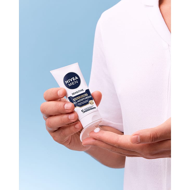 Nivea Men Sensitive Cream Gel er udviklet til manden med sensitiv og sart hud. Lindrer kløende fornemmelser og fugter huden.
