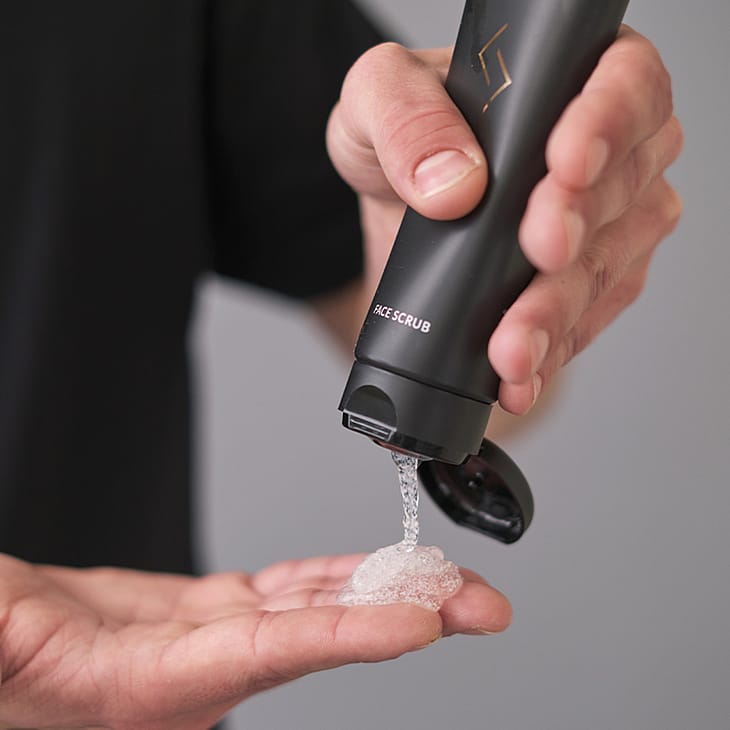 Brug kun Njord Face Scrub 1 gang om ugen eller inden barbering for at mindske irritation.