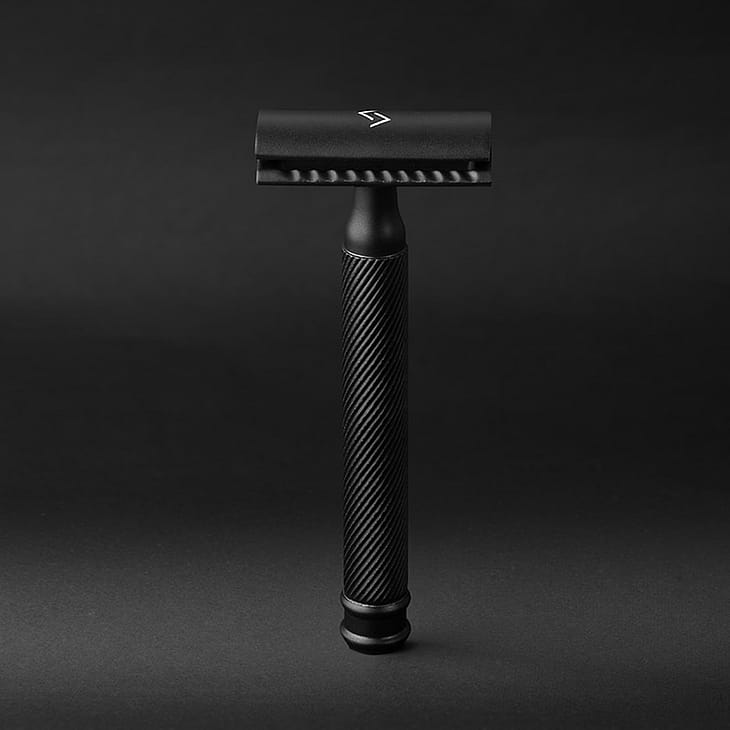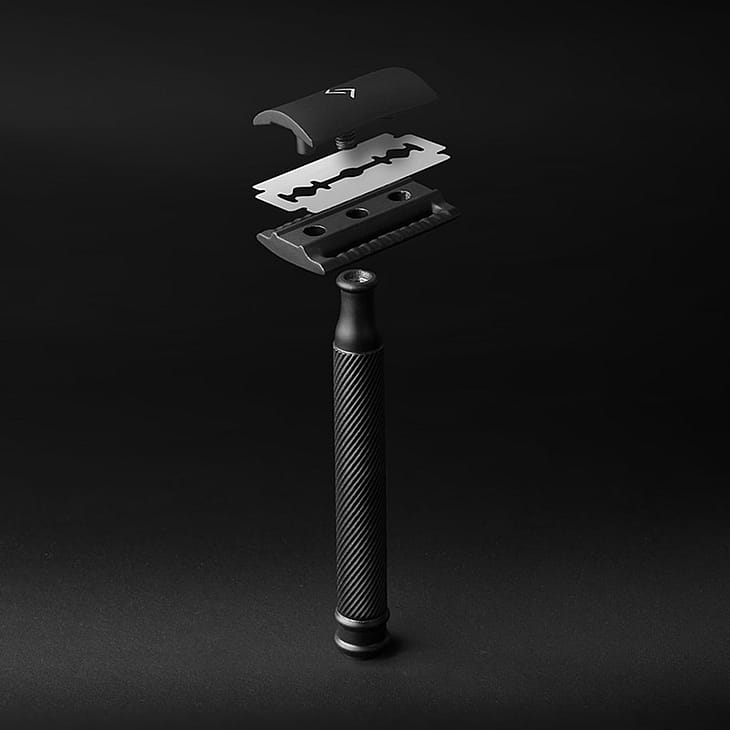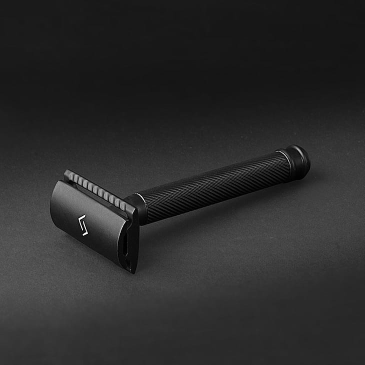 Njord R89 DE Safety Razor er en kvalitetsbarberkniv i messing og zink-legering, coated med mat, sort farve, hvilket giver den en perfekt balance i hånden og et flot design. Der bruges små, udskiftelige barberblade. Bladet stikker ud på begge sider af hovedet - og derfor hedder det Double Edge eller DE. Blade medfølger ikke.
