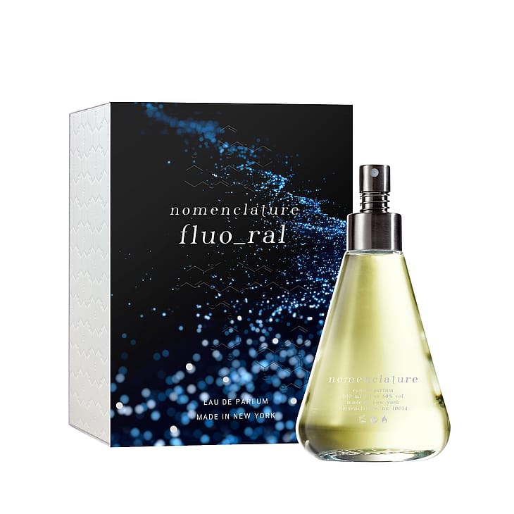 solbær og tomatblade, forstærker dens lyse sillage. Noter fra fastlandet gør denne vanedannende sammensætning komplet. Rose, cedertræ og den mystiske somaliske røgelse bringer fluo_ral til overfladen for at funkle på en måneløs bugt af drømme.