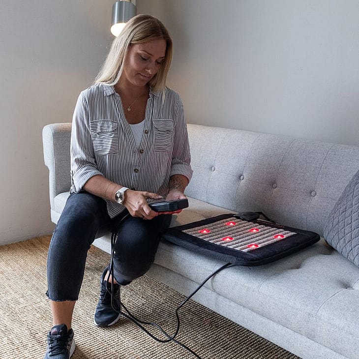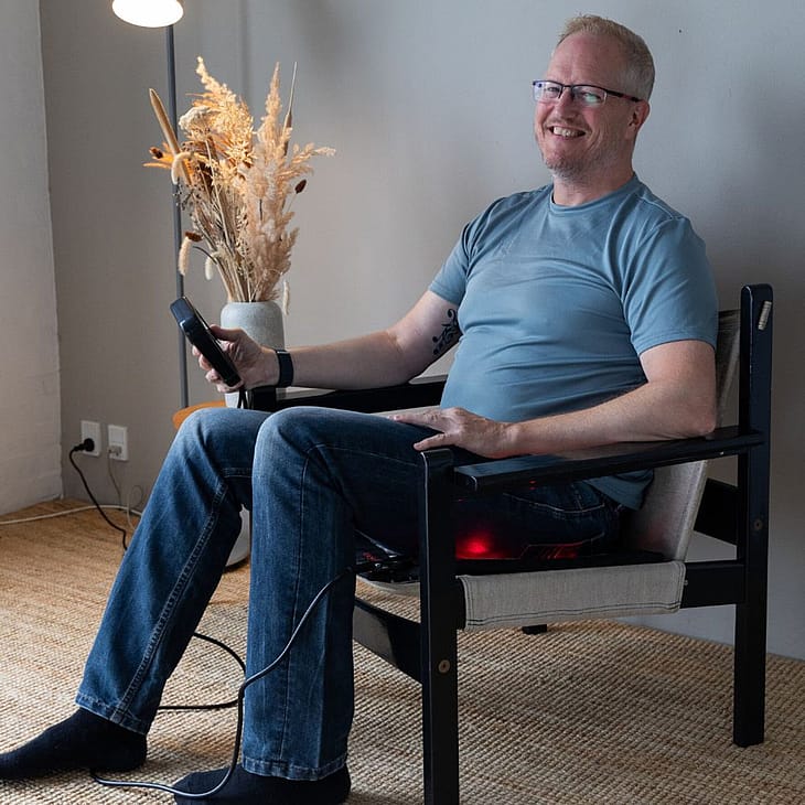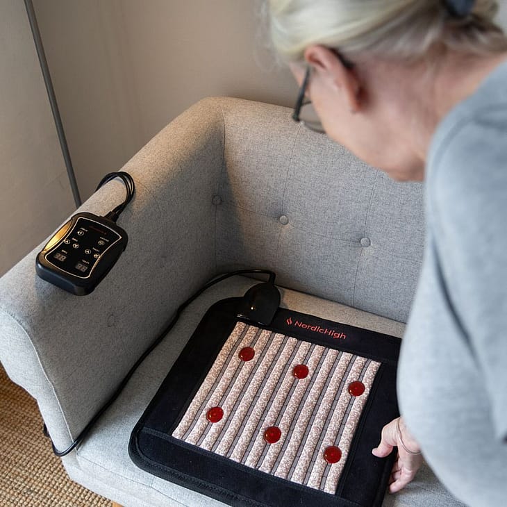 Infrarød Varmehynde Pro kombinerer FAR-infrarød varme, PEMF-terapi, fotonlys og negative ioner i én kompakt og effektiv siddehynde.