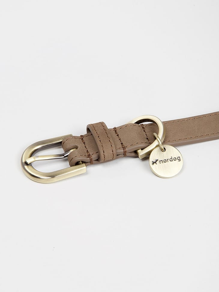Thomas Hundehalsbånd fra danske Nordog er designet af det fineste nubuck læder i en ekstrem høj kvalitet. Halsbåndet er udviklet til at sidde ekstra komfortabelt omkring hundens hals, så alle hunde får det bedste ud af de daglige gåture. Spændet er designet af messing med et gyldent twist, der efter flere års brug stadig har et flot udseende. Fællesnævner for alle Nordog halsbånd er, at de er lavet i et tidløst og skandinavisk design, som hverken går på kompromis med kvalitet eller holdbarhed.
