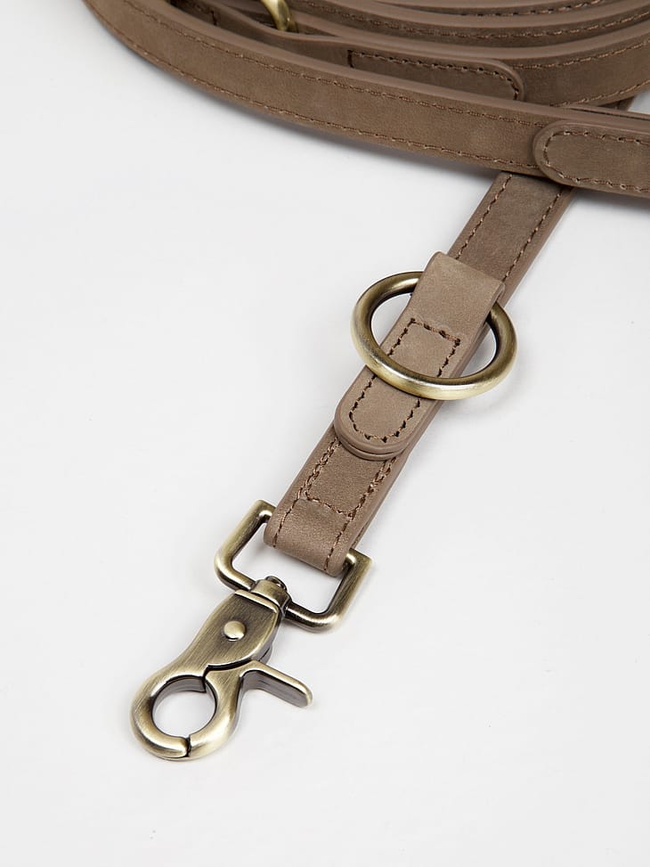 Thomas Hundeline fra danske Nordog er designet i det fineste italienske nubuck læder. De to spænder samt krogene på linen er af messing med et gyldent twist, der fuldender det eksklusive design. Med Thomas Hundeline får din hund en line i et skandinavisk og ekstremt holdbart design, der holder i flere år.